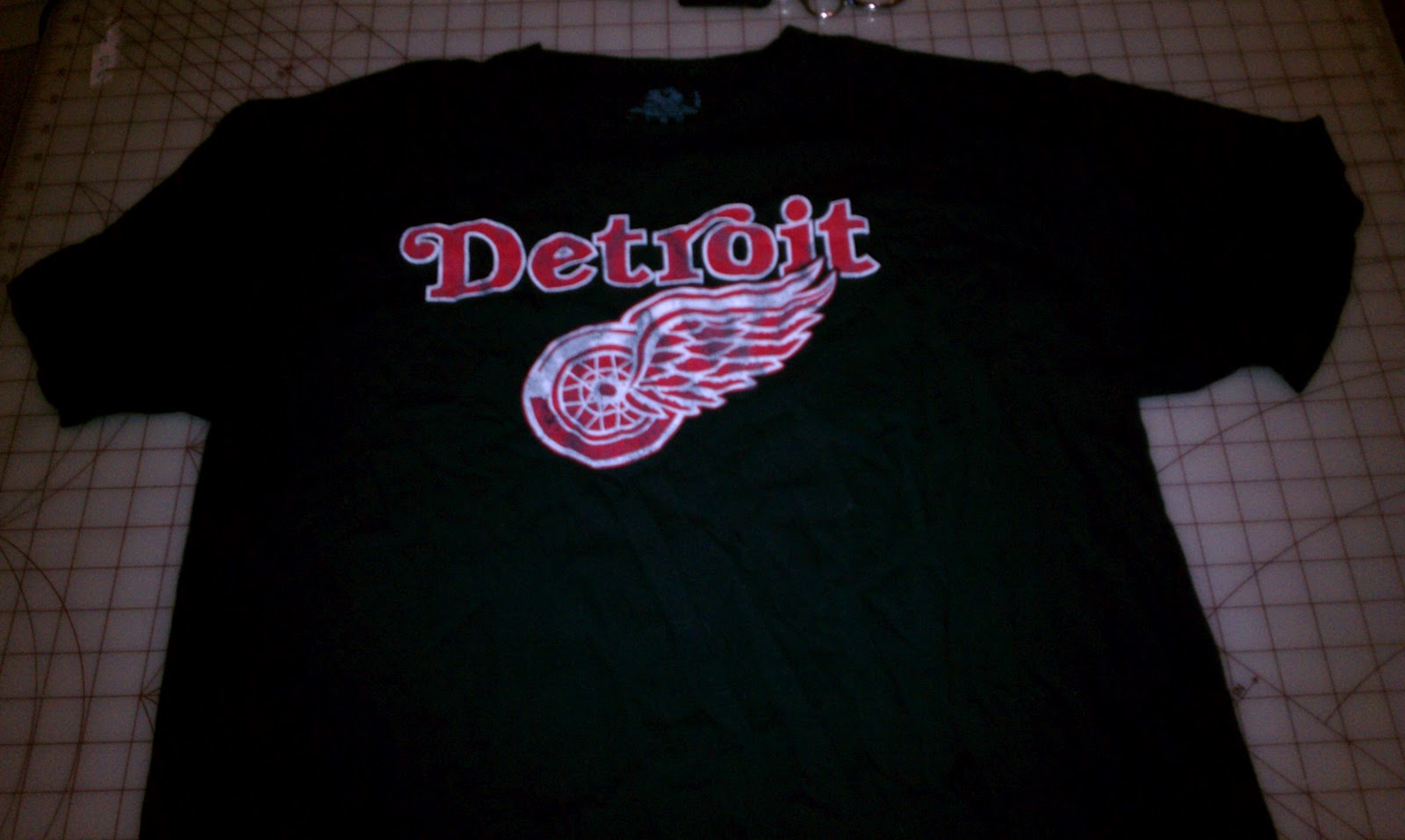 Tonights victim is a Detroit Red Wings shirt (one of my favorite hockey teams).